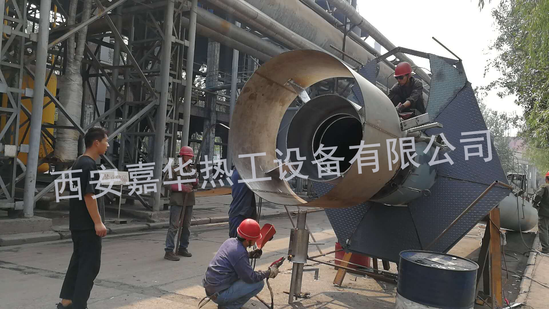 西安嘉華熱工在河南鋼廠3套轉(zhuǎn)爐煤氣放散點火施工現(xiàn)場
